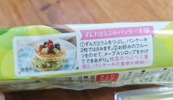 今回はやりませんでしたが、パッケージの側面に「ずんだとうふのパンケーキ風」というアレンジレシピが紹介されていました。