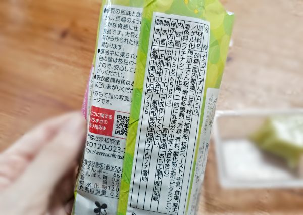 豆腐にずんだを入れたのかな?もっちり食感ってどういうこと?とパッケージには気になることがいろいろと書かれています。